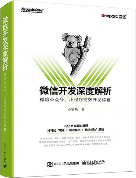 为了将我们积累的经验更多、更系统地与开发者分享,由 Senparc.Weixin SDK 作者耗时 2 年,亲自整理编写的《微信开发深度解析:公众号、小程序高效开发秘籍》已经出版。
